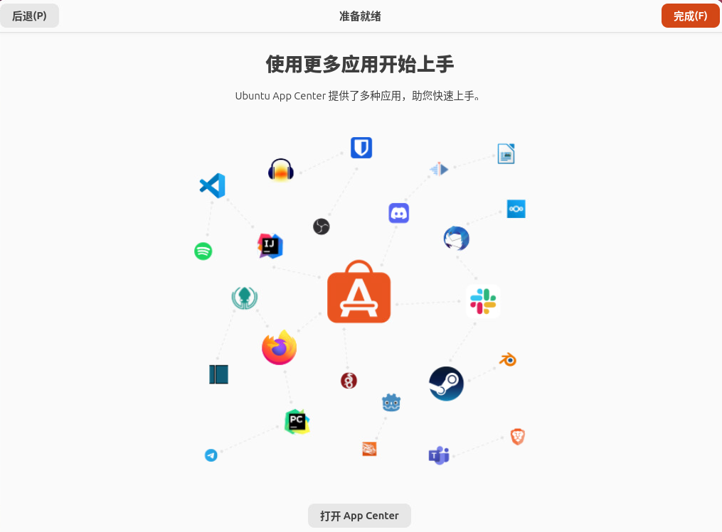 第7步,安装的应用选择【默认集合】。有意思的来了:进度条上的红点仿佛学会了缩地成寸,直接从第6个跳到了第10个。这大概是Canonical的程序员在教我们什么叫欲速则不达,或者是为了安慰我们这些等得焦急的工科男?
