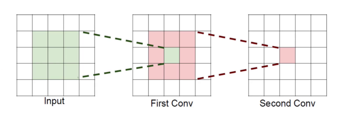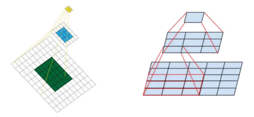 - 感受野:特征图上的一个点能看到的原始图像区域大小。3 个 3×3 卷积堆叠,感受野和 1 个 7×7 卷积相同,但参数量更少。