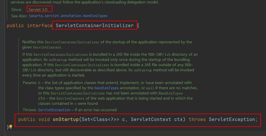 Servlet3.0 规范中定义了ServletContainerInitializer接口,Web 服务器启动时会自动扫描并加载该接口的实现类,调用其onStartup方法完成 Servlet 上下文的初始化。