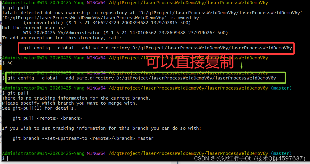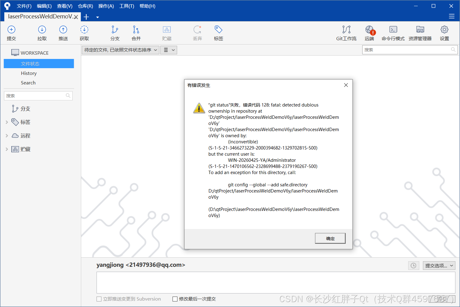 上面完成了一次提示的安全路径添加,实际认为还是有点问题,无法拉取和提交(这个应该需要账号和密码,但是全程没提示,所以笔者认为可能不行)。