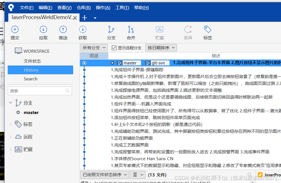进行了一次git svn的地址初始化后,souceTree可以拉取了: