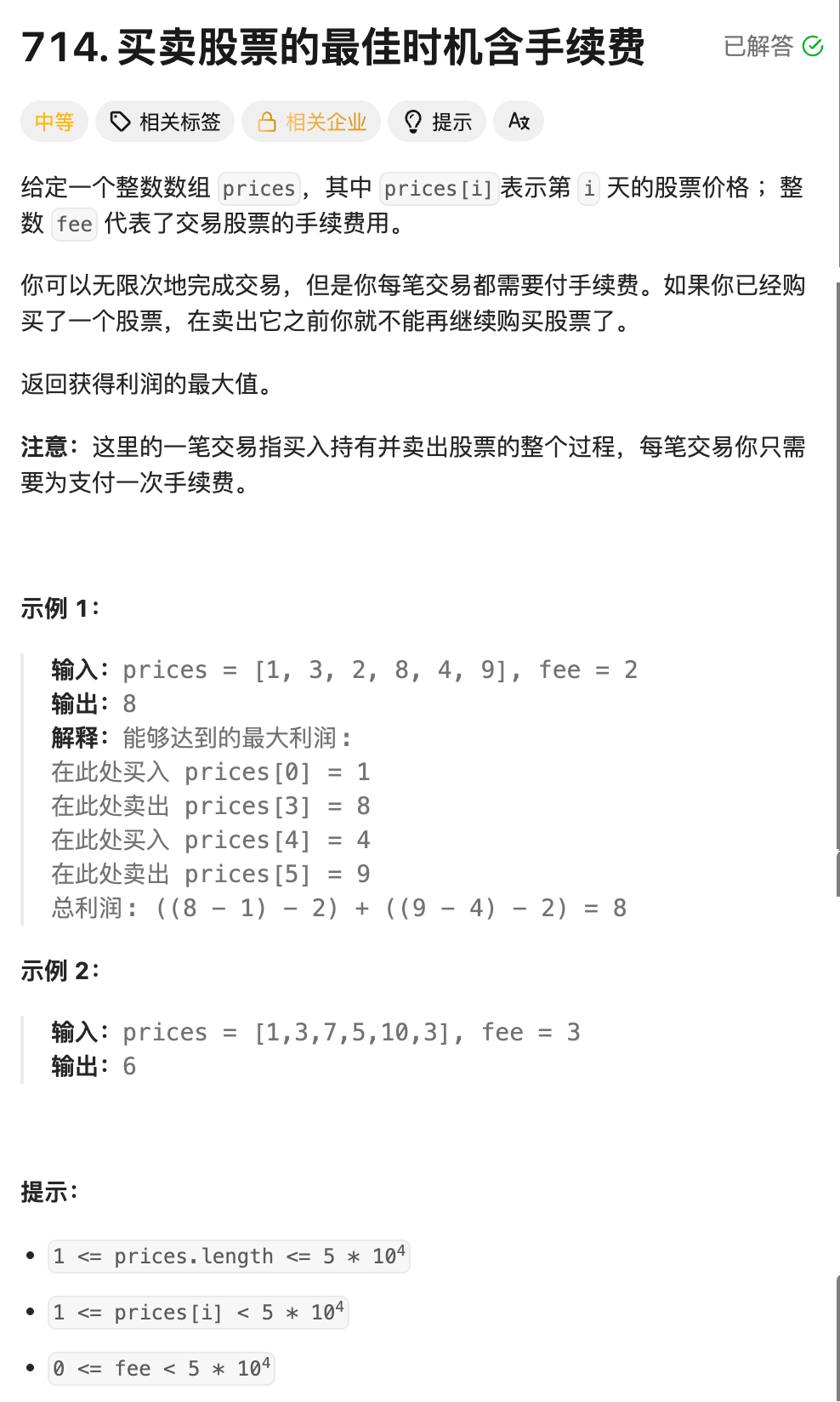// 情况2:前一天不持有股票,今天买入 → g[i-1][j] - prices[i]
