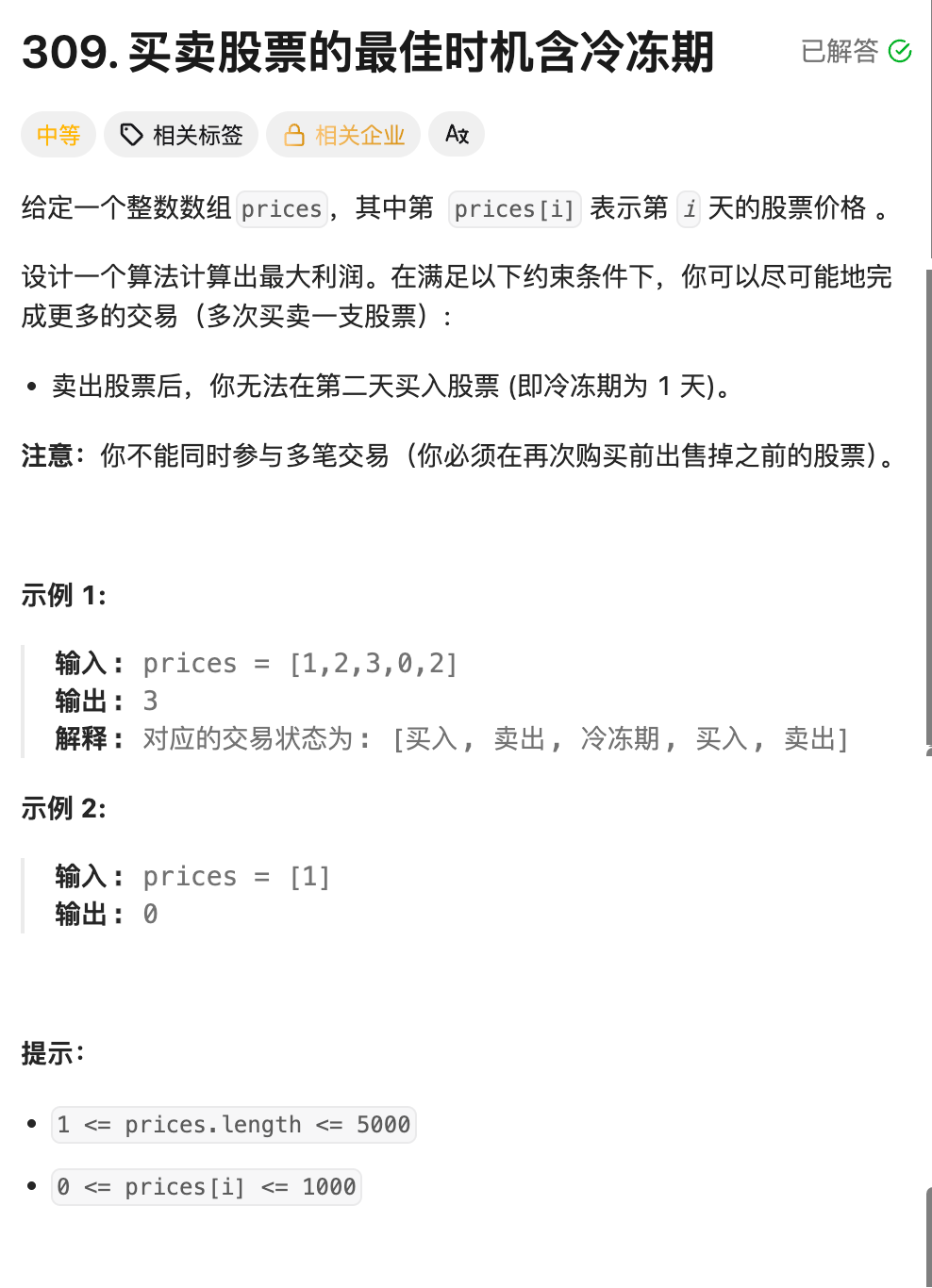 - 6.买卖股票的最佳时机含冷冻期(OJ题)