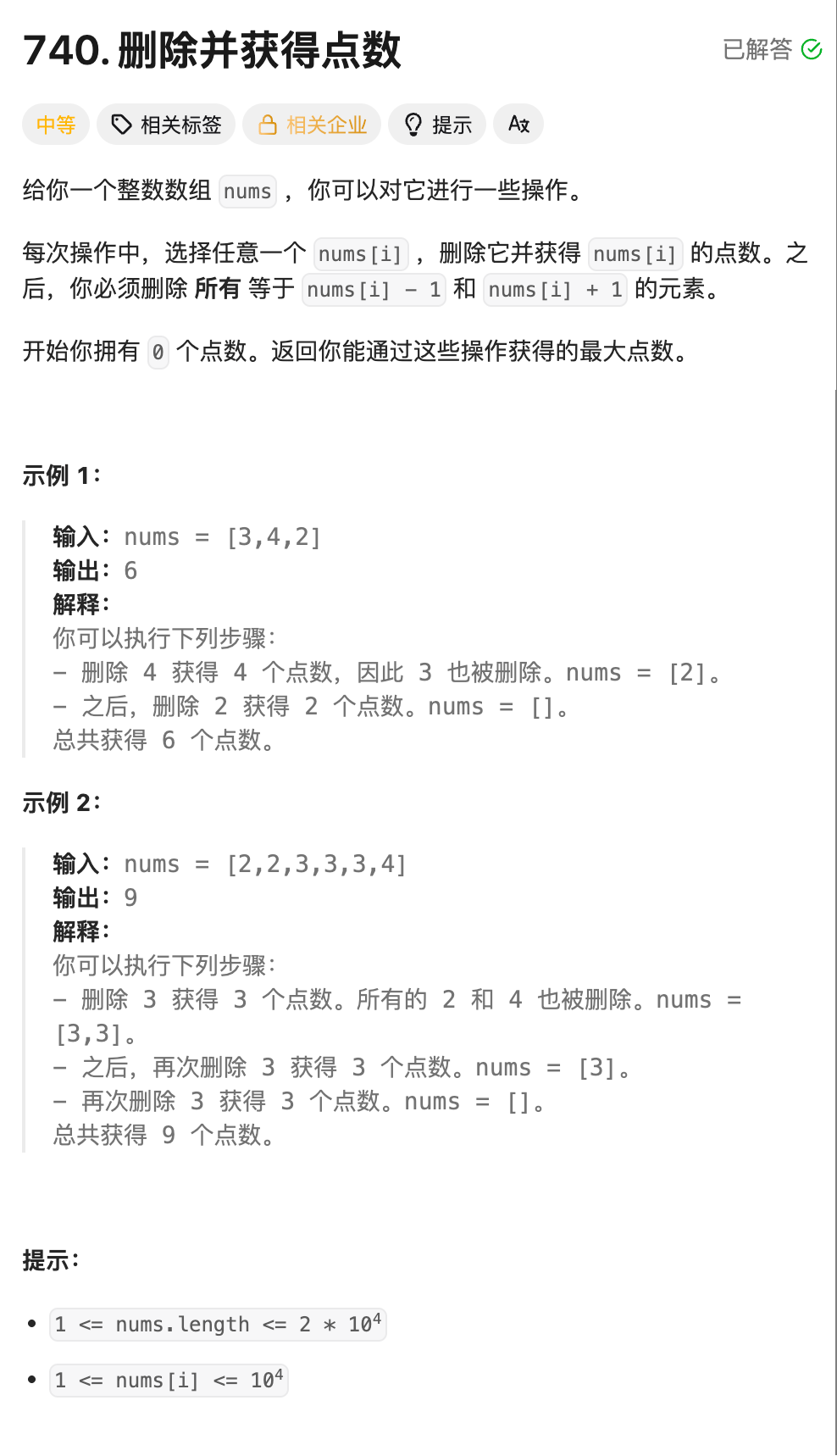 - 4.删除并获得点数(OJ题)