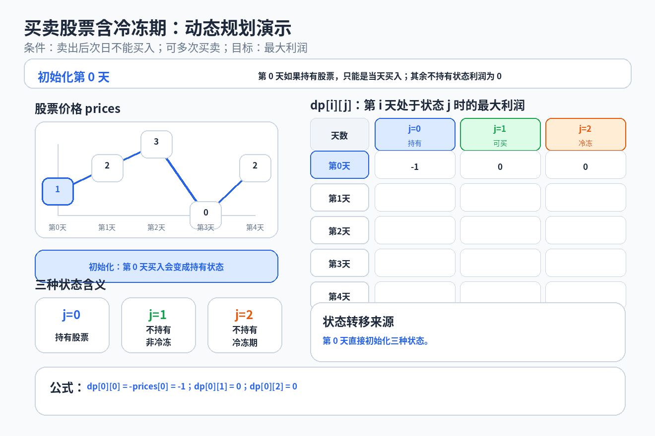 //初始化:第 0 天(第一天)的初始状态
