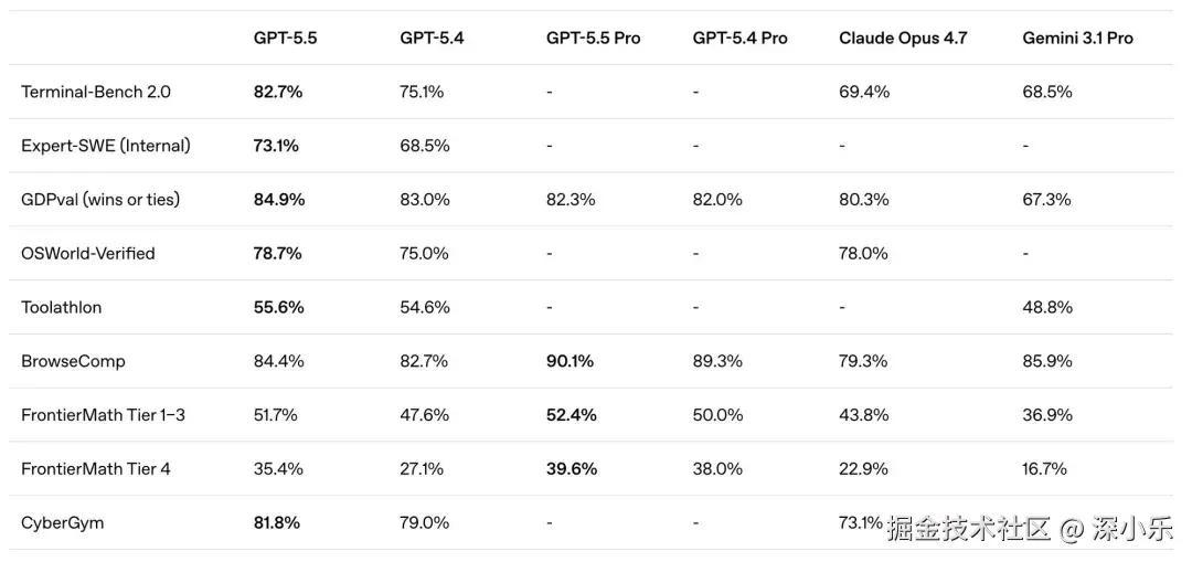 二、GPT-5.5:智能体登顶,但编程不敌 Claude
