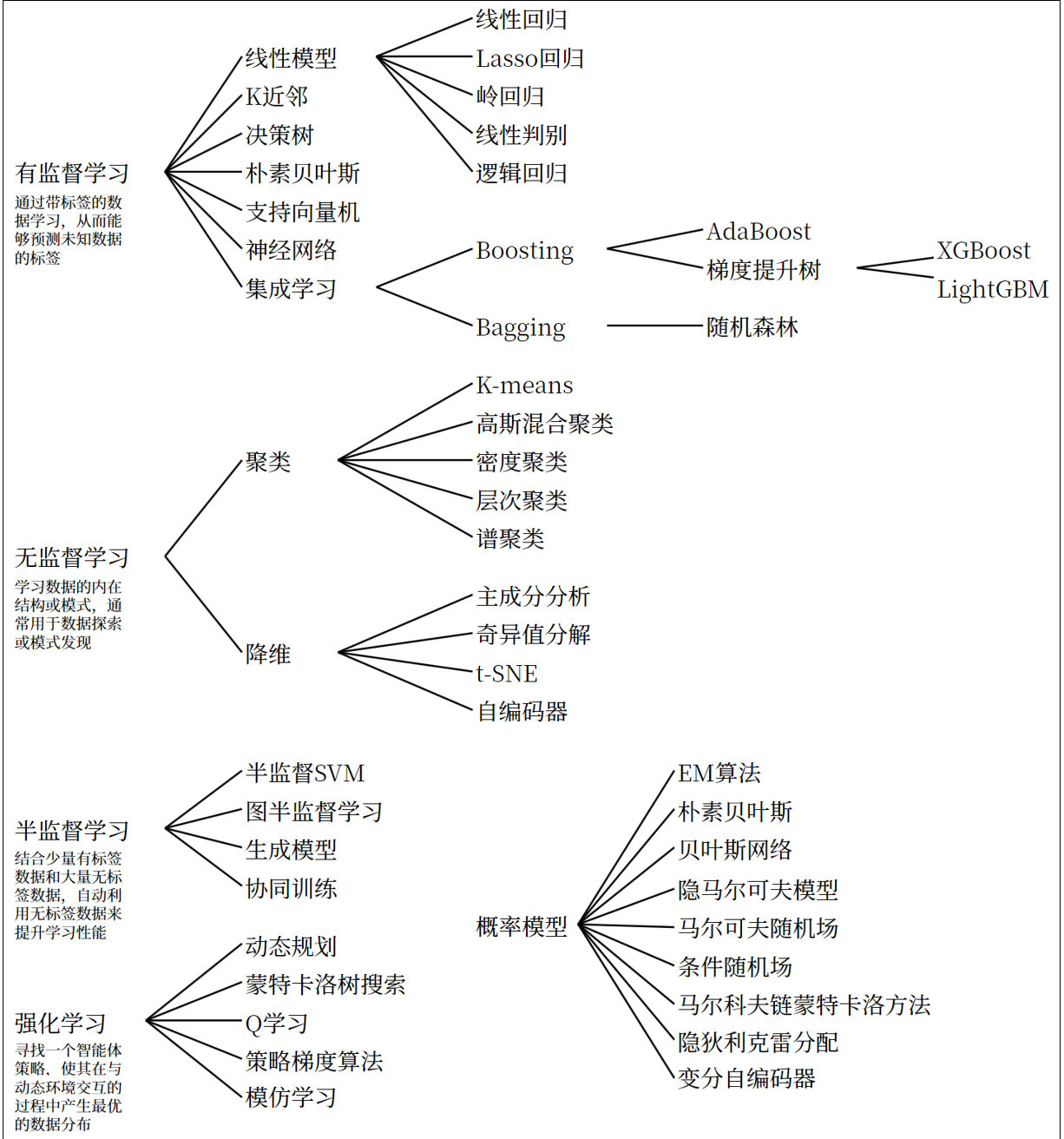 按模型分类:根据模型性质,可以分为概率模型/非概率模型,线性/非线性模型等。