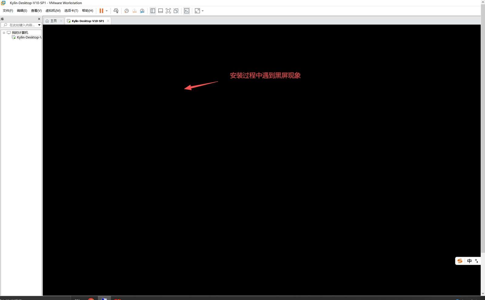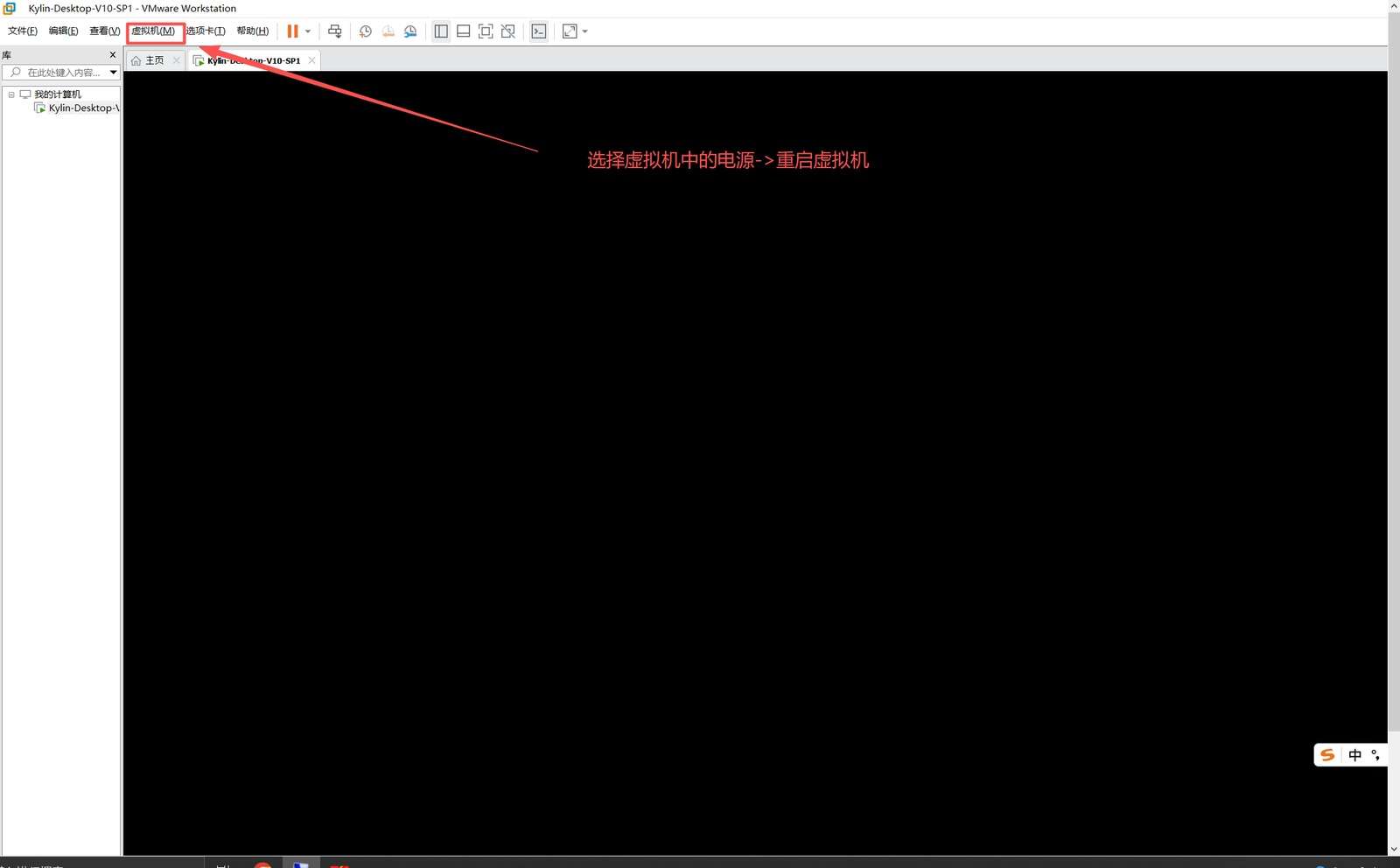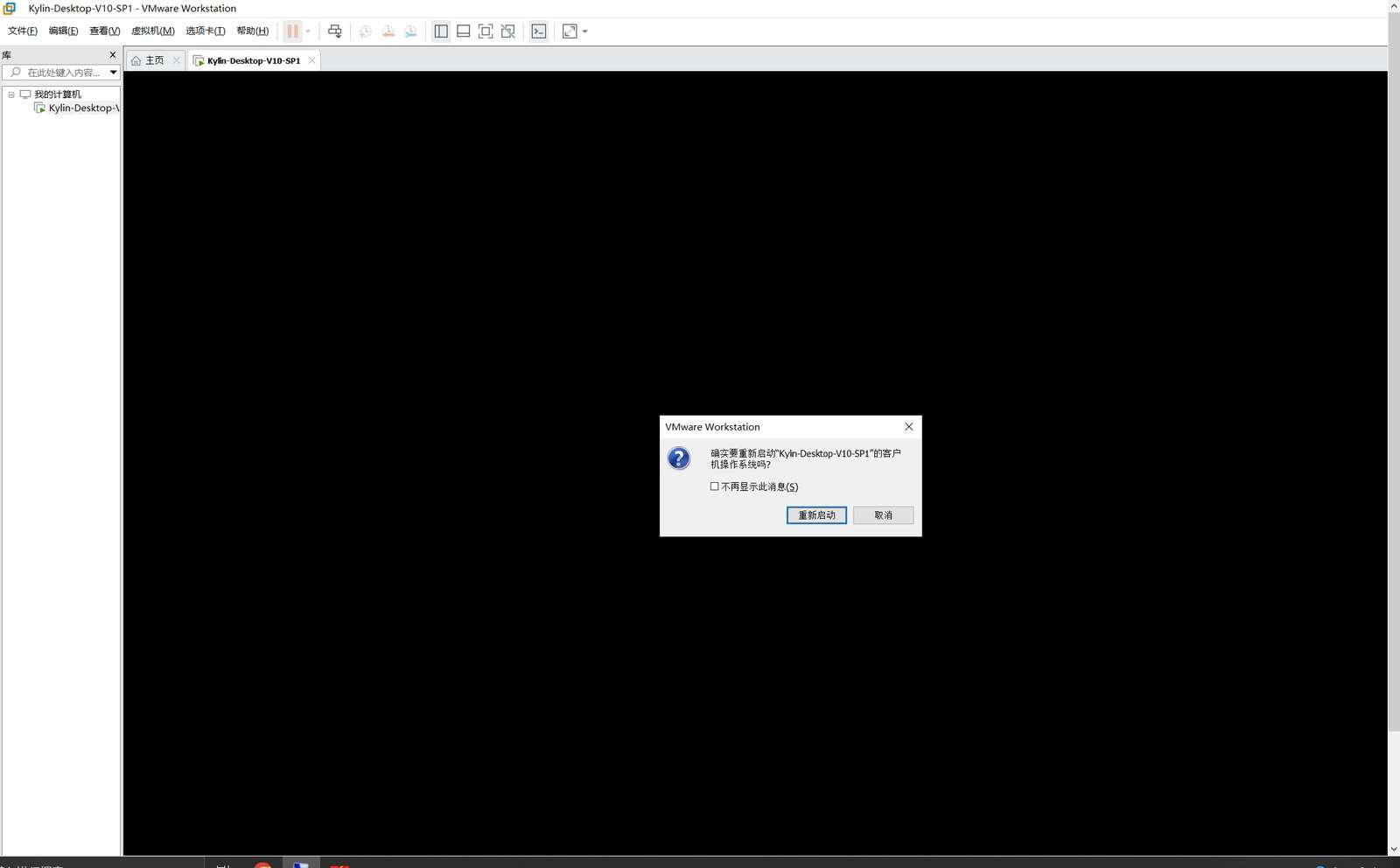 菜单重启虚拟机;如果反复黑屏,检查虚拟机配置、ISO