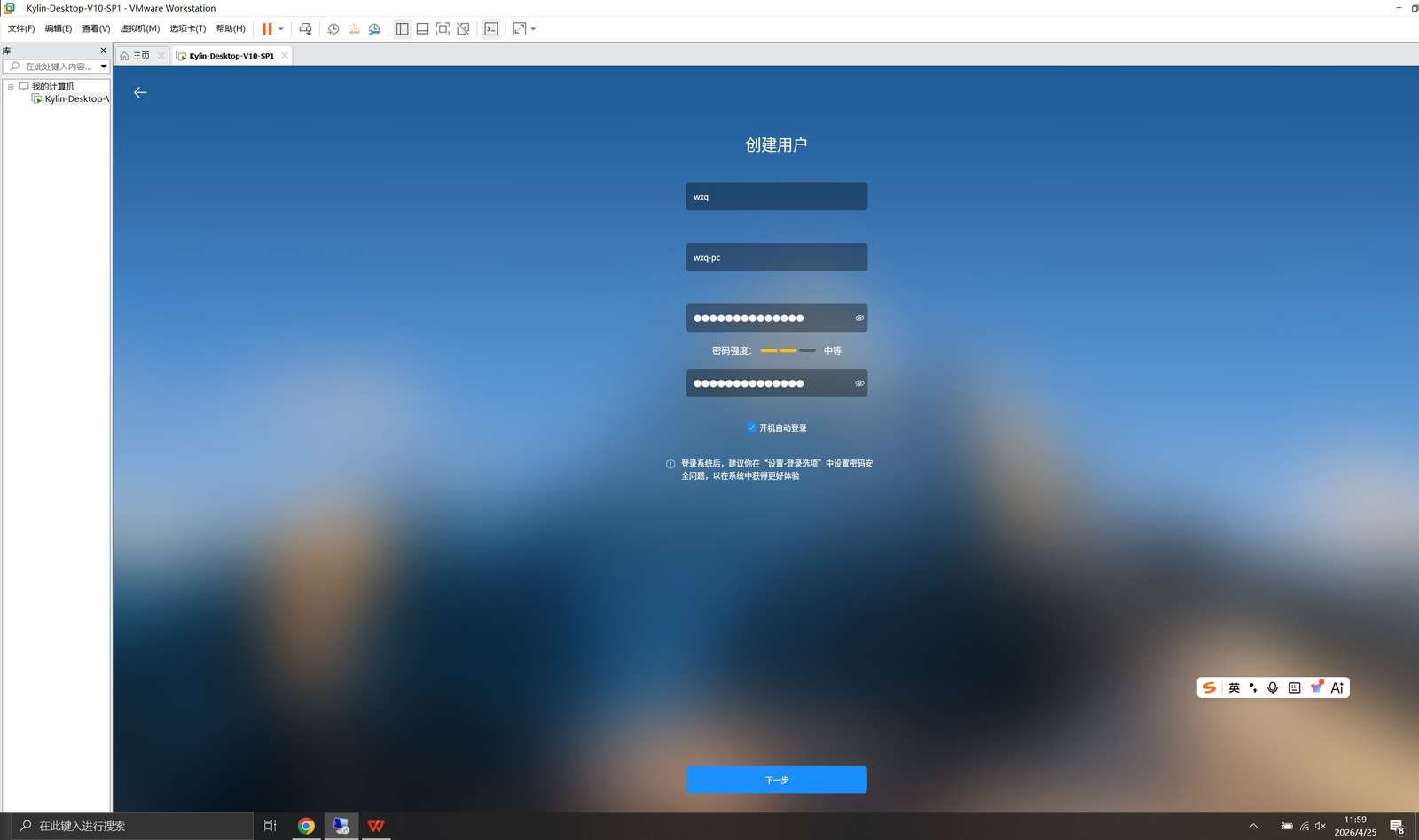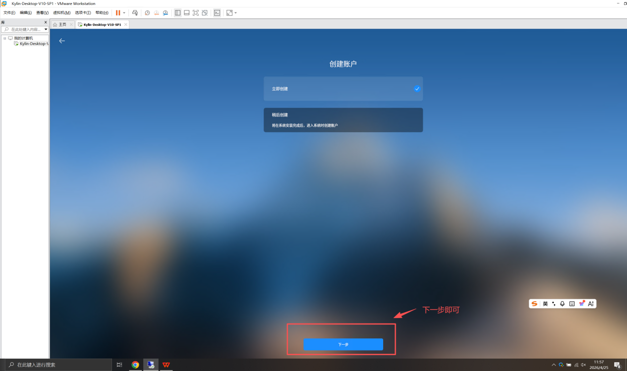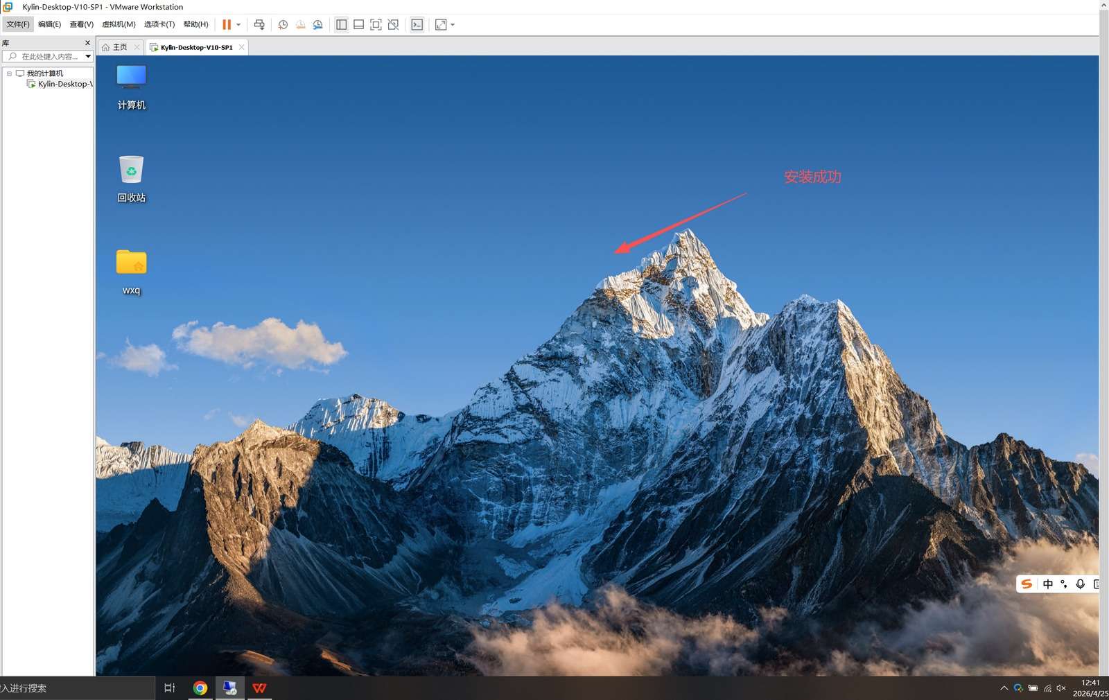 成功进入桌面后,说明麒麟系统已经安装到虚拟硬盘。