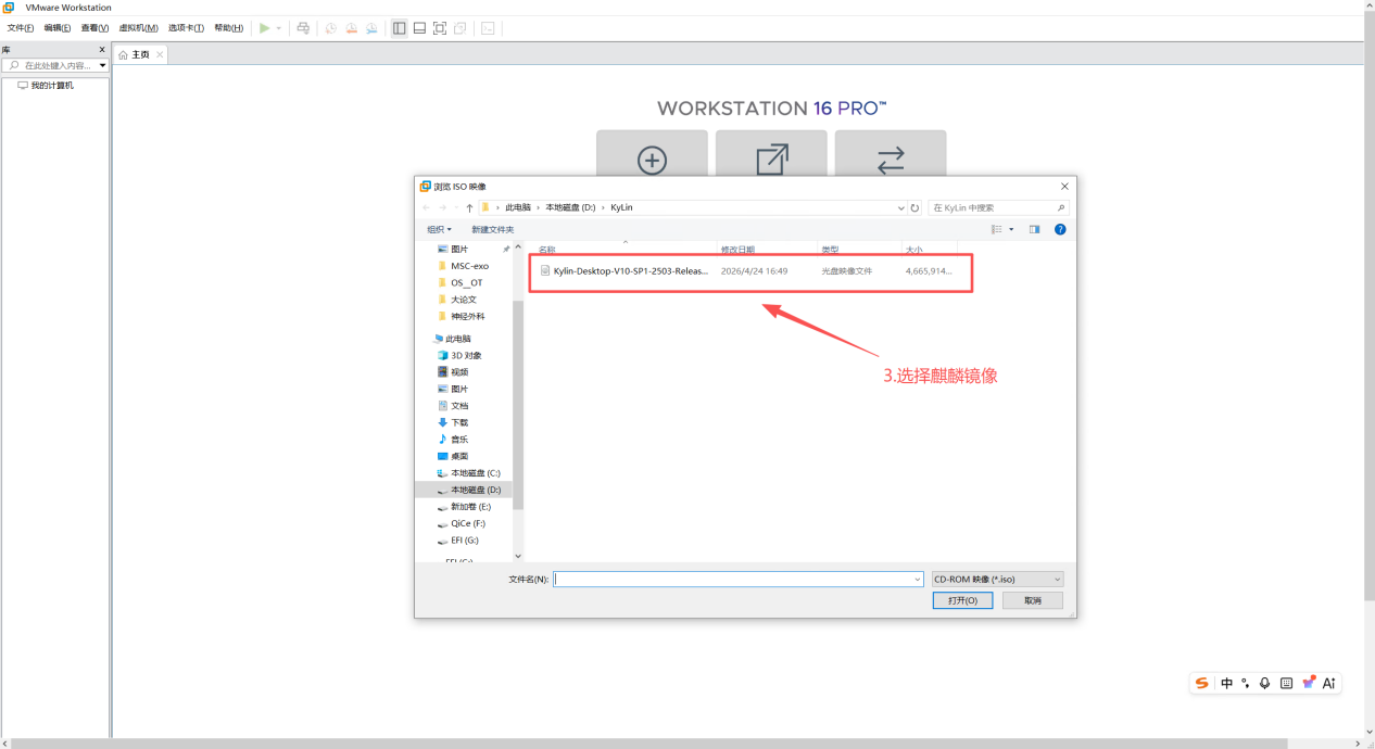 图 3-3 浏览并选择麒麟 ISO 镜像文件