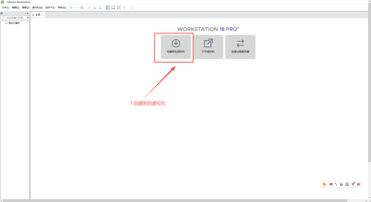 图 3-1 打开 VMware Workstation,创建新的虚拟机