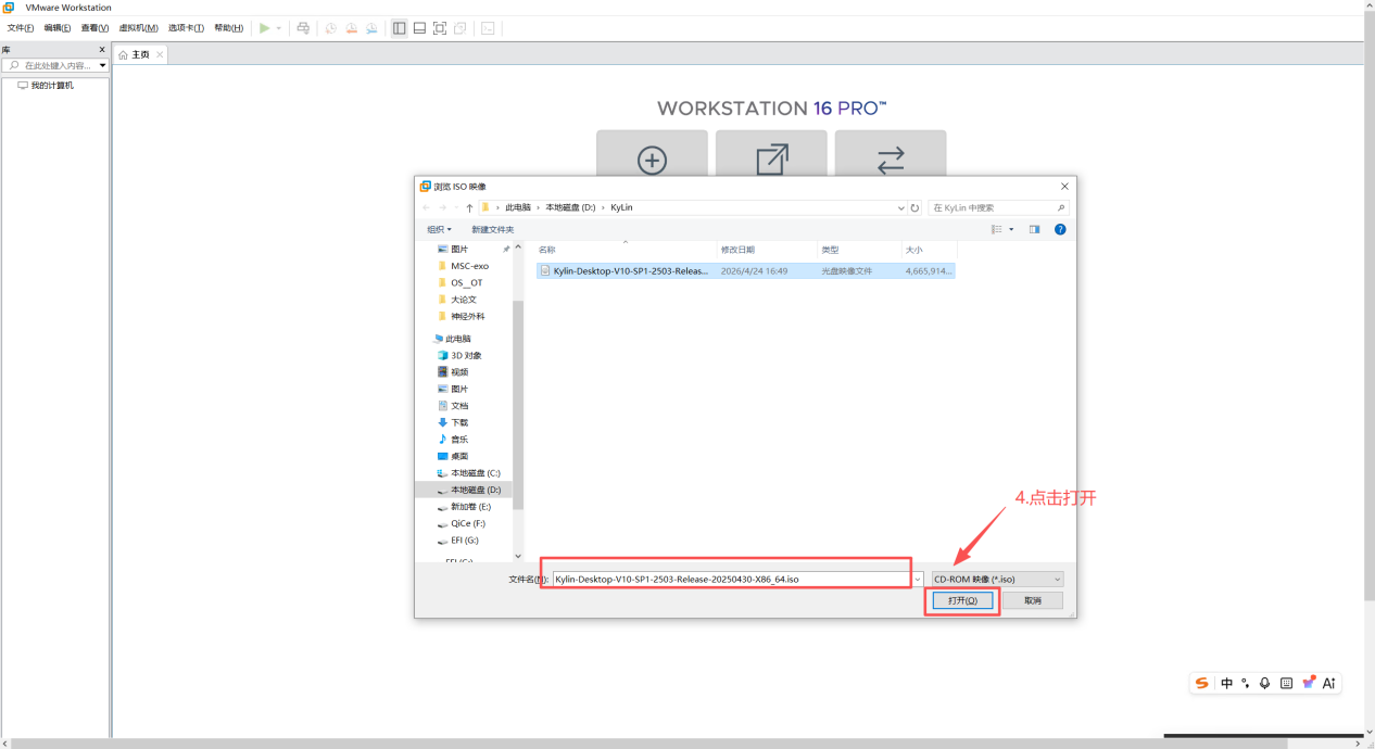 3.3 浏览并选择麒麟 ISO 镜像文件