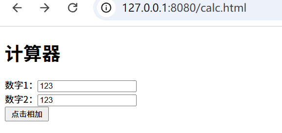 需求:输入两个整数,点击"点击相加"按钮,显示计算结果