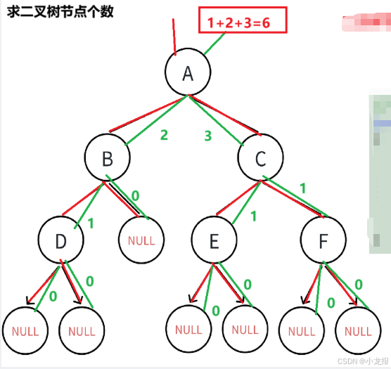 二叉树结点个数=根节点+左子树结点个数+右子树结点个数