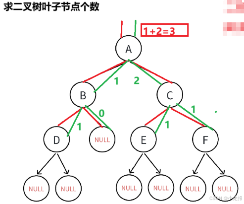二叉树叶子节点个数=左子树叶子节点个数+右子树叶子节点个数