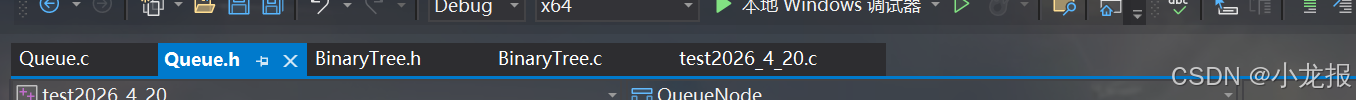 1.我们需要先把队列的.c和.h文件导入到当前vs项目中,然后在Tree.c文件里面包含上Queue.h文件