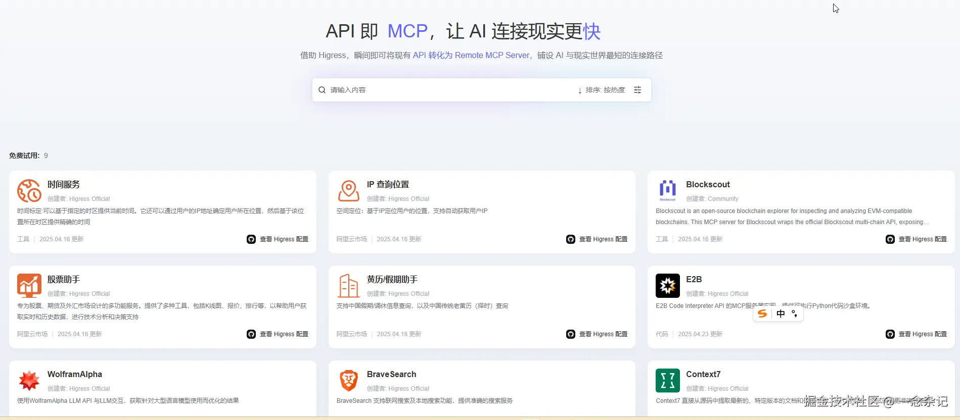 - Higress MCP 市场 www.modelscope.cn/mcp