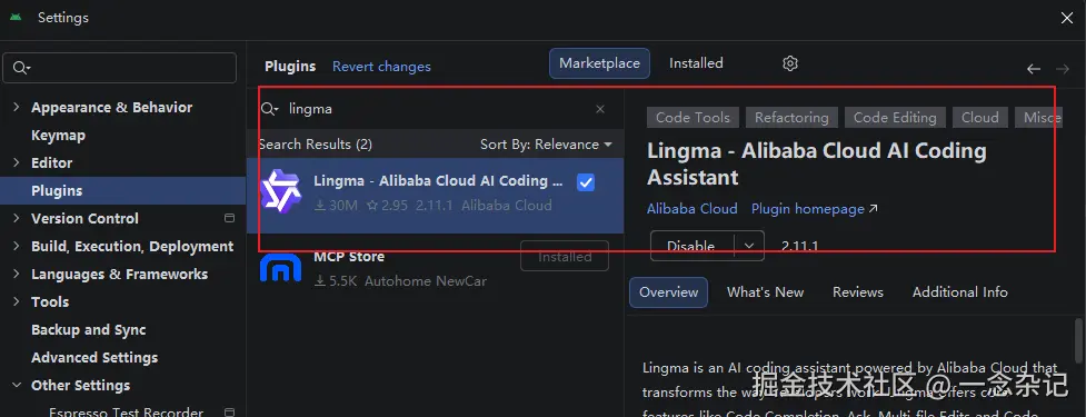 在File->Setting->plugin 插件中搜索"lingma",然后点击install安装即可。