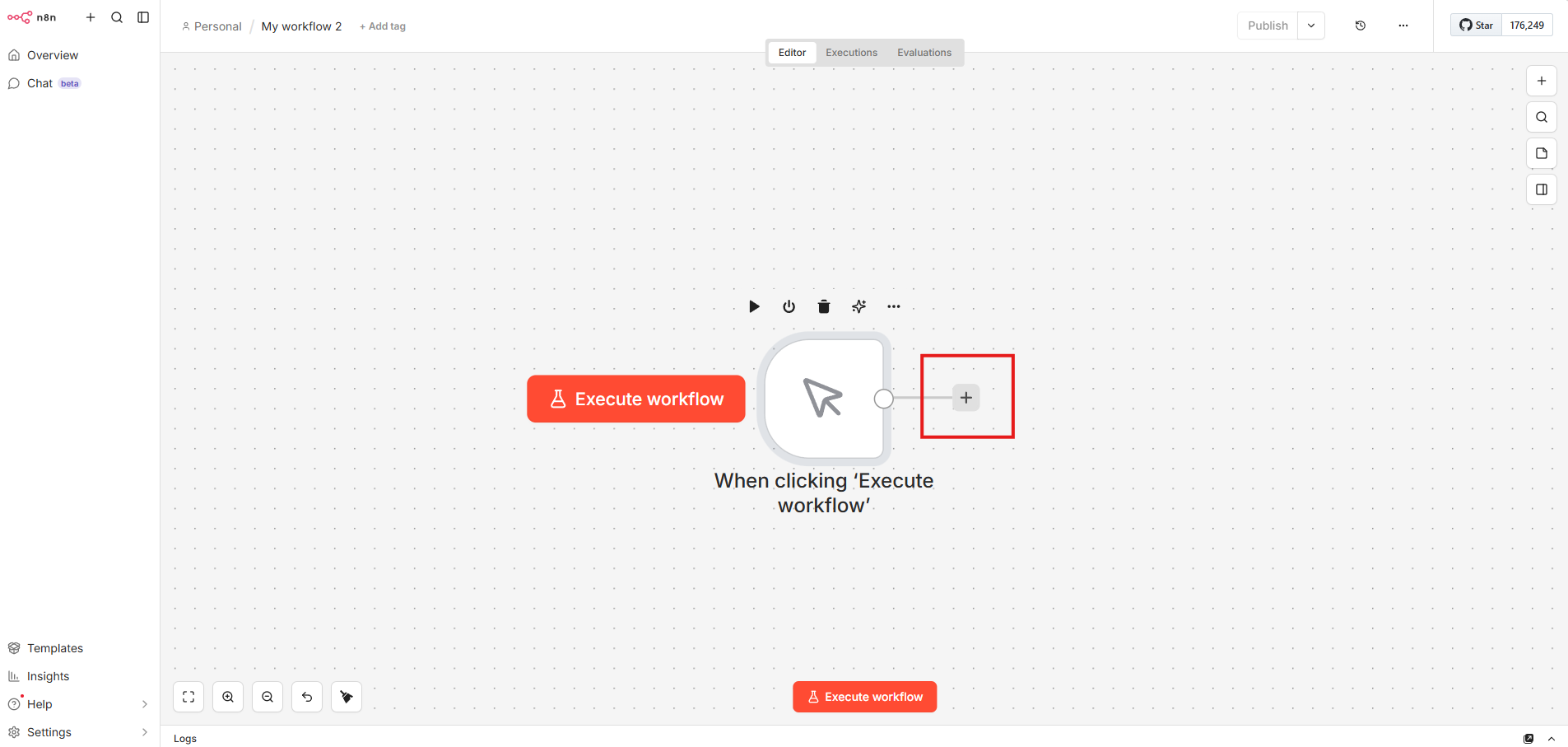 创建新工作流:在n8n面板点击"创建工作流",进入可视化编辑界面: