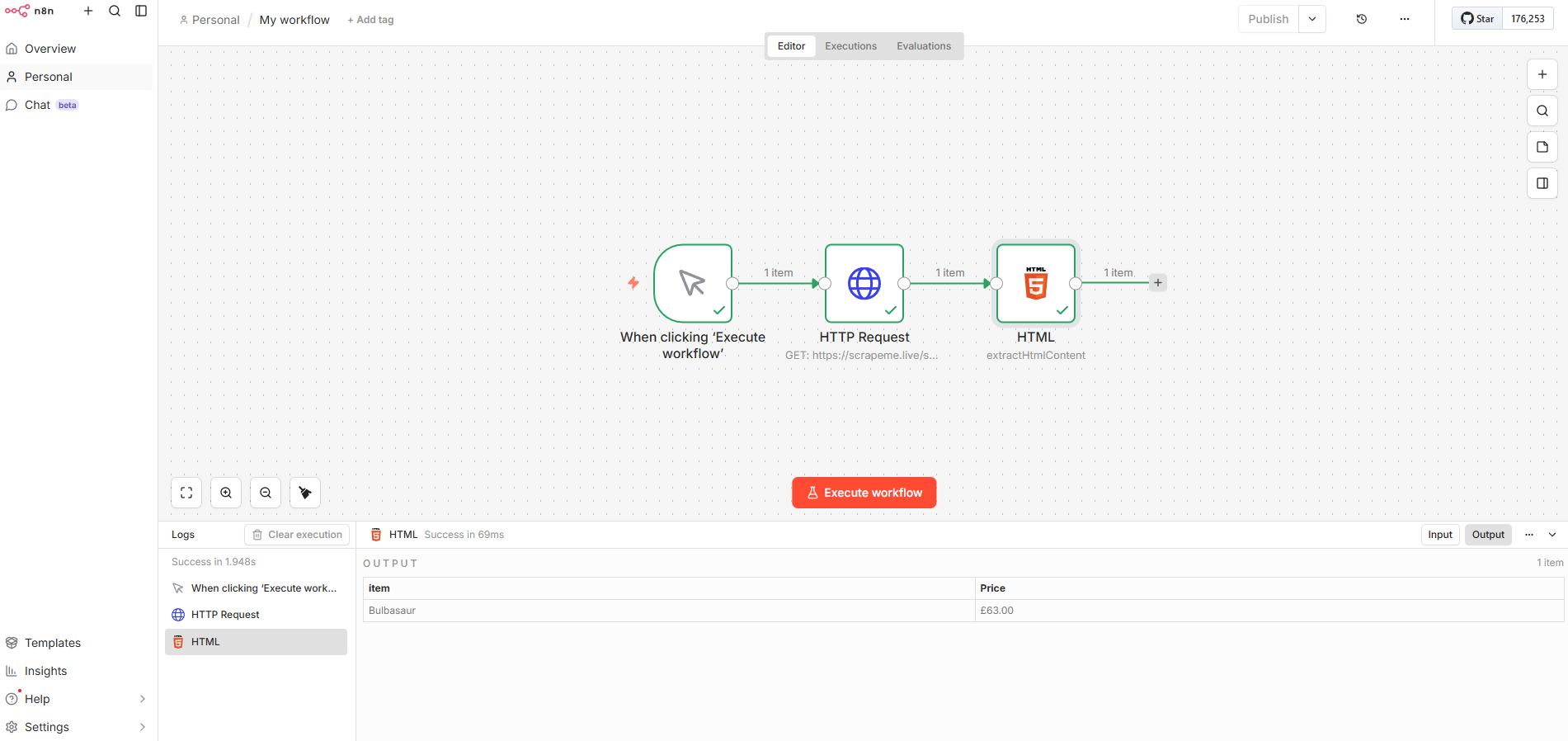 测试验证:返回主界面点击"执行工作流",成功节点将显示绿色边框。若出现红色提示或数据异常,请检查参数设置与网页结构,或查阅官方文档。