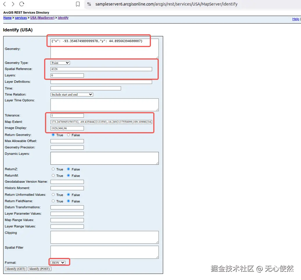 geometry:要查询的点的坐标(JSON格式)。