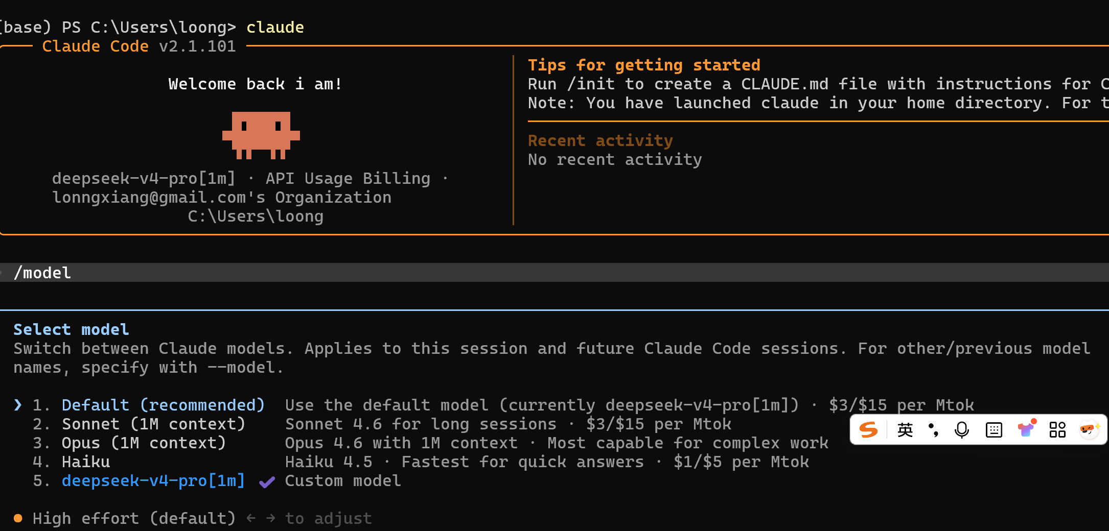 $env:ANTHROPIC_MODEL="deepseek-v4-pro[1m]"