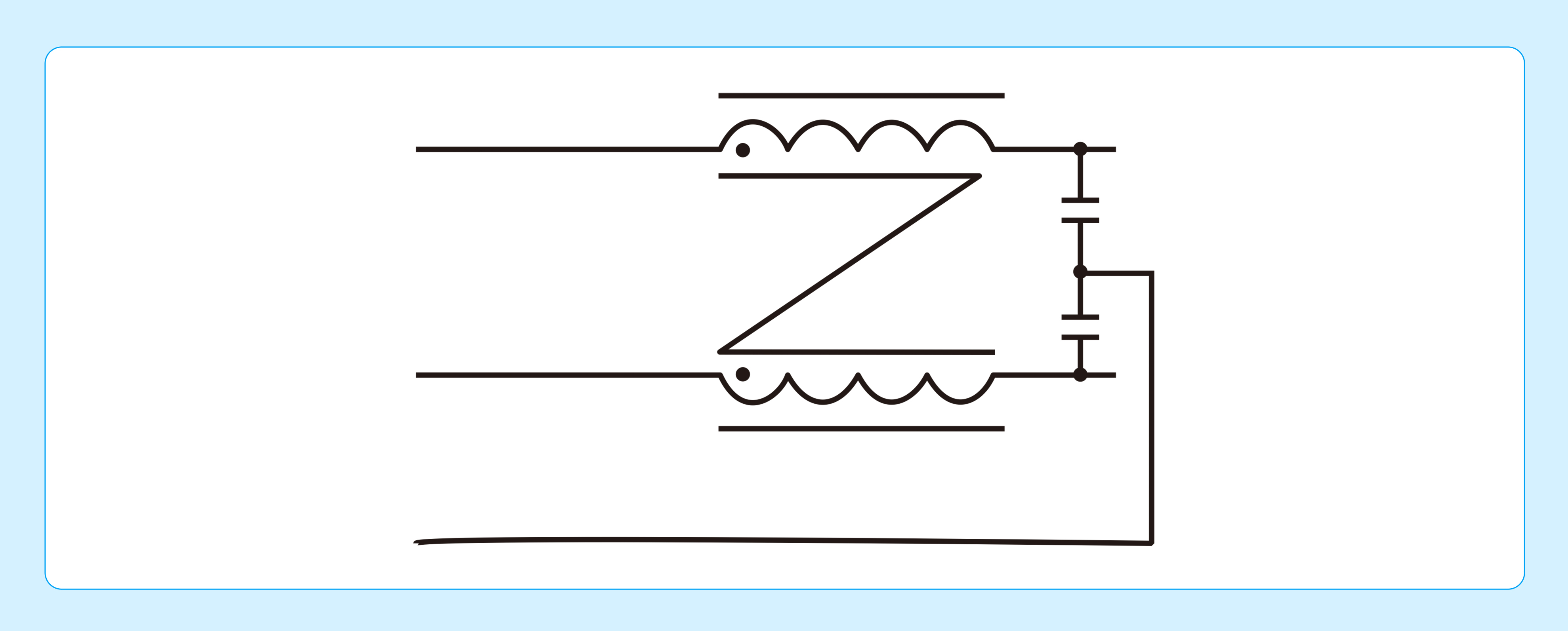 在电源模块中带来该类型的纹波噪声的通常是导线上的寄生电容电感、变压器的寄生电容电感、不同器件之间的寄生电感电容等等。这一类型的纹波噪声通常以共模的形式存在,因此降低这种类型的纹波噪声的方法除了尽可能的从设计上改善以上寄生参数外(如优化工艺设计及PCB走线等等),还可以施加共模滤波方案。如下图的共模电容及共模电感为常规的共模滤波器件: