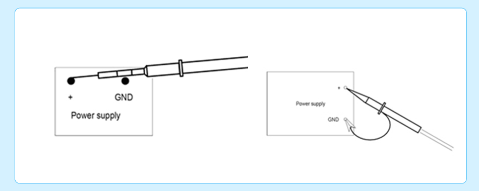 相对于常规的甩线测试,靠测法主要是减小了地线环的面积,避免在测试的过程中在地线环路中耦合到干扰,影响了测试结果。主要的方法是像图中所述,将地线夹子去掉,直接使用探头上的环铜作为地使用。这样可以有效的避免外接电磁环境对测试的影响。