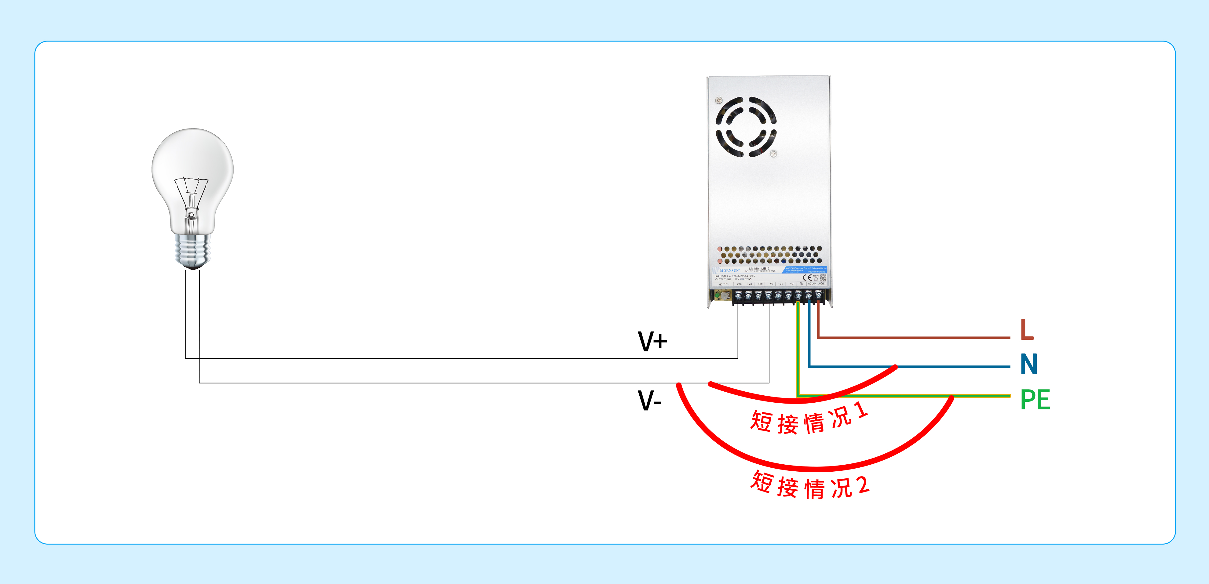 ①判断方法:排查是否把电源模块N线/输入地--输出地短接,排查后端负载板是否存在负极接地点。