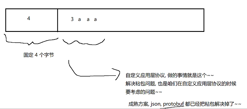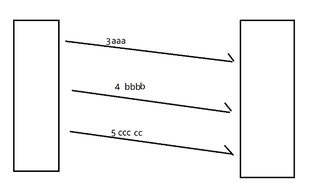 先读4个字节得到长度,再根据长度的值,决定接下来读多少,比如,先读3,再往后读三个值,也就是"aaa"。即使是"43aaa"(其中3是数据包中的数据,4只是个报头),也可以像上图一样精准的表示出来,便于读取。