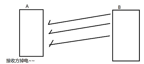 这里在B给A发送了数据包之后,A突然掉电了,B后续发来的数据就没有ack返回了,B一开始超时重传,重传达到了一定次数仍没有ack,就会触发"重置TCP连接",B主动发一个复位报文,之前的就都从头开始了,如果rst同样没有ack,那么B就只能单方面释放连接了。