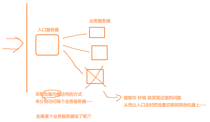 比如一共有10000条请求来到了入口服务器,为了提高处理的效率,入口服务器通常会将他们分给若干个业务服务器中,一起来处理这些请求。