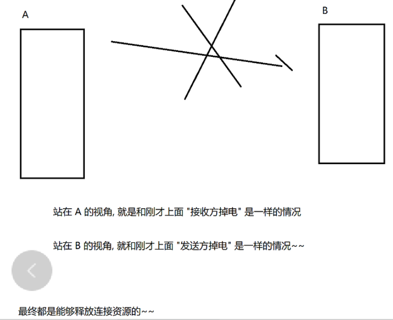 B作为接收方发现,A突然没有声音了,此时作为接收方的B区分不了A是挂了还是暂时休息了一会,B就只能继续等待,B等待一定时间后,就会周期性的给A传输一个特殊的报文,"心跳包",这个不携带业务数据(载荷),只是为了触发ack,如果对方有心跳,那就继续正常等待,如果没有心跳,就只能通过rst尝试,若还是不行,就只能单方面释放连接。