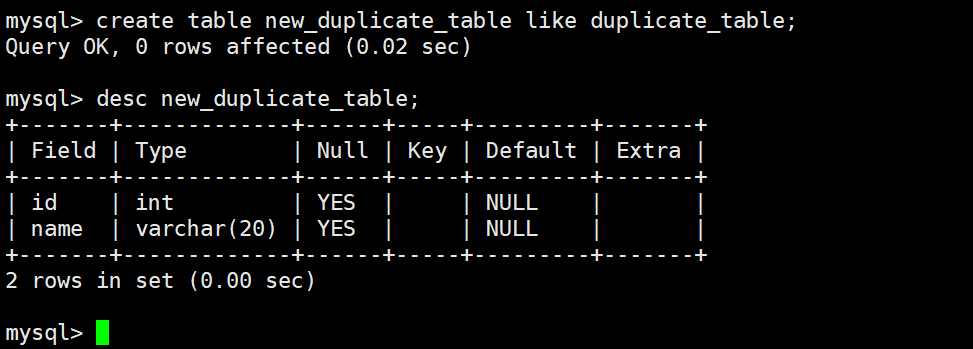 CREATE TABLE new_table LIKE old_table;
