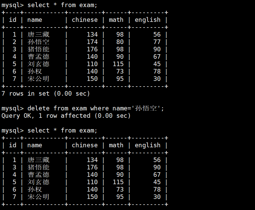 WHERE name = '孙悟空';