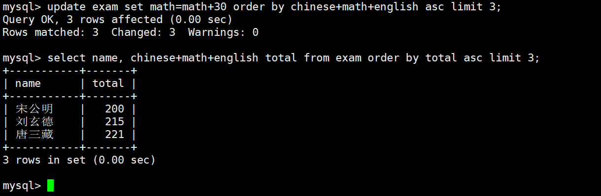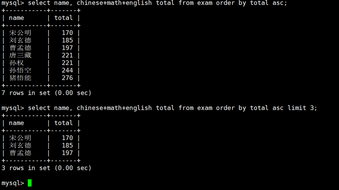ORDER BY chinese + math + english