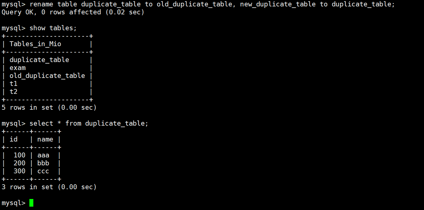 RENAME TABLE old_table TO backup_table,