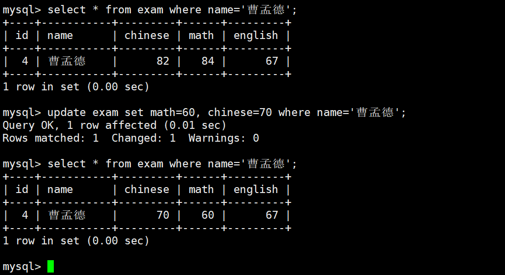 WHERE name = '曹孟德';