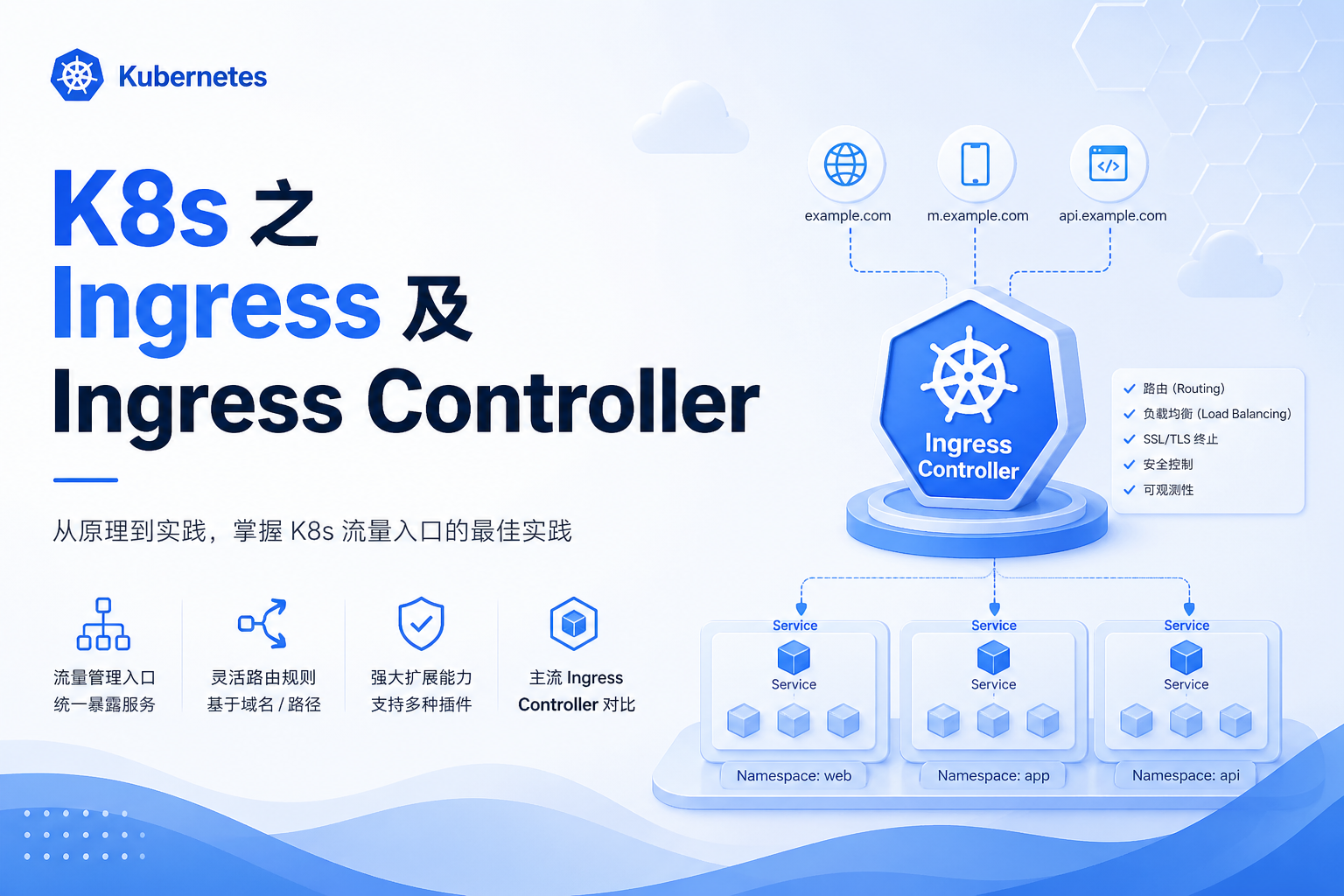 | 外部访问入口 | 提供统一的集群外部访问入口点(通常是域名或 IP) |