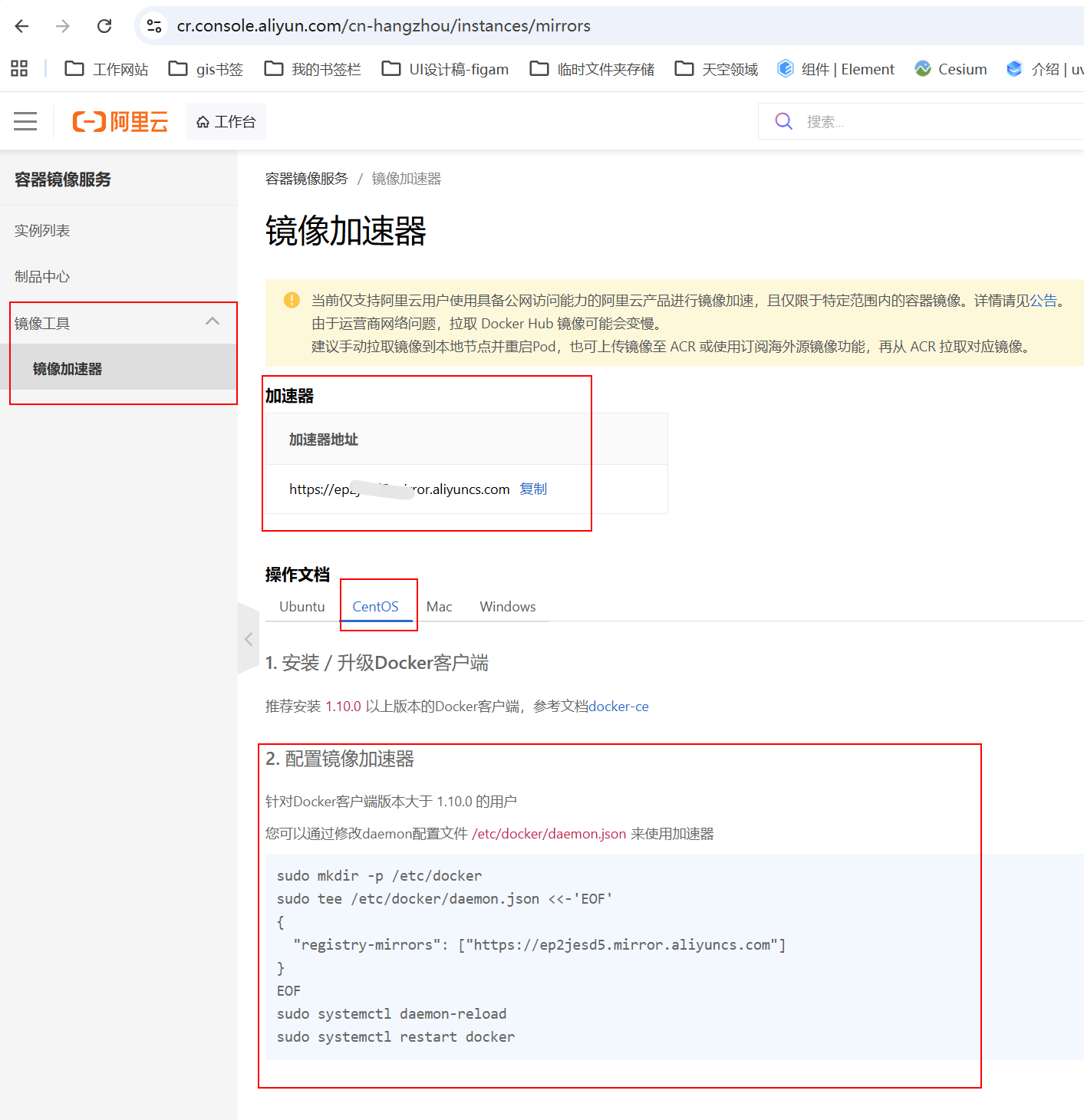 登录阿里云-->控制台-->产品与服务-->镜像-->镜像加速器--centos