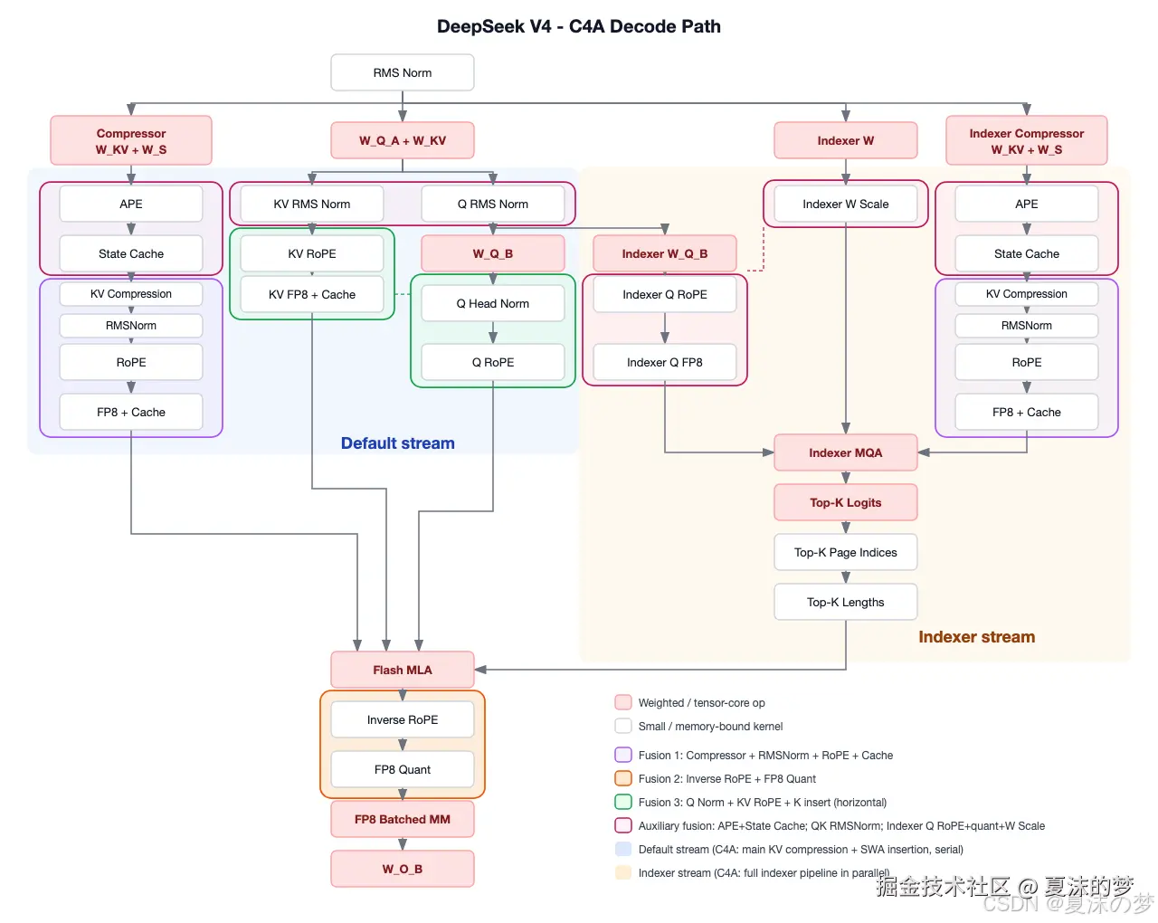 - CUDA 图 和 MTP 遵循与 SWA 相同的集成模式,同时保留压缩器状态特定的元数据和实现细节。