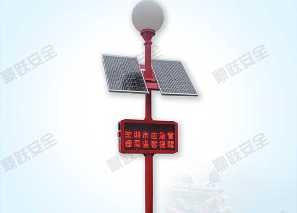 鼎跃安全的DY-SEE-GTF300W太阳能台风预警宣传信号杆,核心就是把"预警"这件事,从被动通知,变成主动触达。它不需要人一直盯着天气变化,而是将监测、预警、提示整合在一起,让信息直接出现在现场。