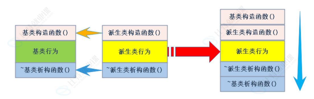 - 派生类和基类中有同名成员,派生类成员将屏蔽基类对同名成员的直接访问,这种情况叫隐藏。(在派生类成员函数中,可以使用基类::基类成员 显式访问)