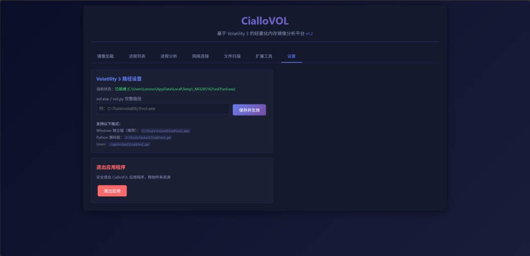 CialloVOL 1.2 是一款基于 Volatility 3 架构研发的轻量化内存取证分析平台,兼容全量物理内存镜像与进程 MiniDump 转储载体。依托双引擎解析架构,实现异构内存样本的自适应识别与模块化解析,为终端内存取证、恶意代码溯源提供专业化技术支撑。
