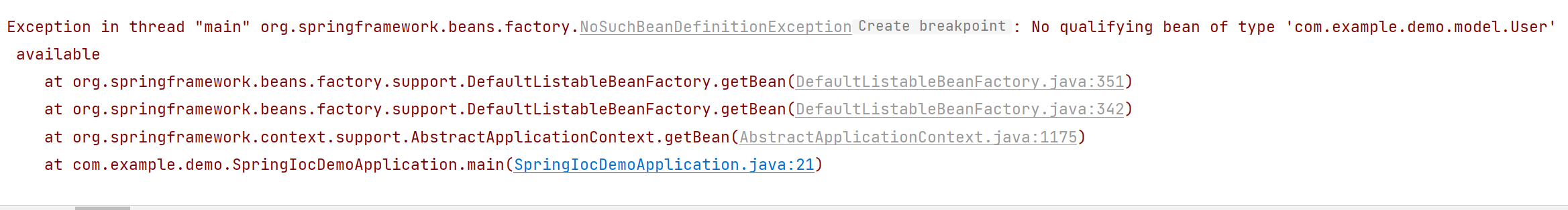 然⽽,当我们写完以上代码,尝试获取bean对象中的user时却发现,根本获取不到: