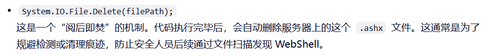 但是这个代码是一次性的 访问后就会删除 因为网上的POC有System.IO.File.Delete(filePath);