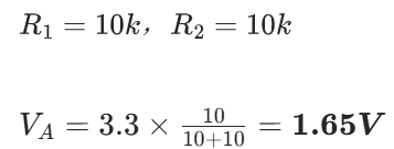 3.3V → R1 → 节点A → R2 → GND(0V)