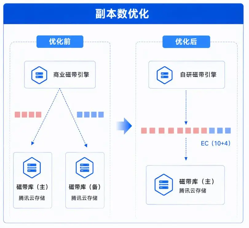 然而,多副本方案存在存储效率低下的问题:比如2副本意味着增加1倍的存储开销,3副本则需要增加2倍。对于 PB 乃至 EB 级别的冷数据,额外产生的存储容量及其带来的磁带库采购、机柜空间和运维成本是非常高昂的。