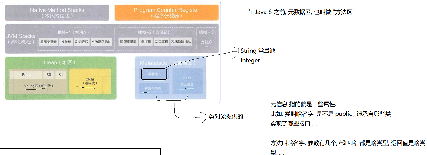 字符串常量本身就包含在.class文件中,就需要.class文件里解析出来的字符串常量放到内存空间里(在元数据区的常量池中)。