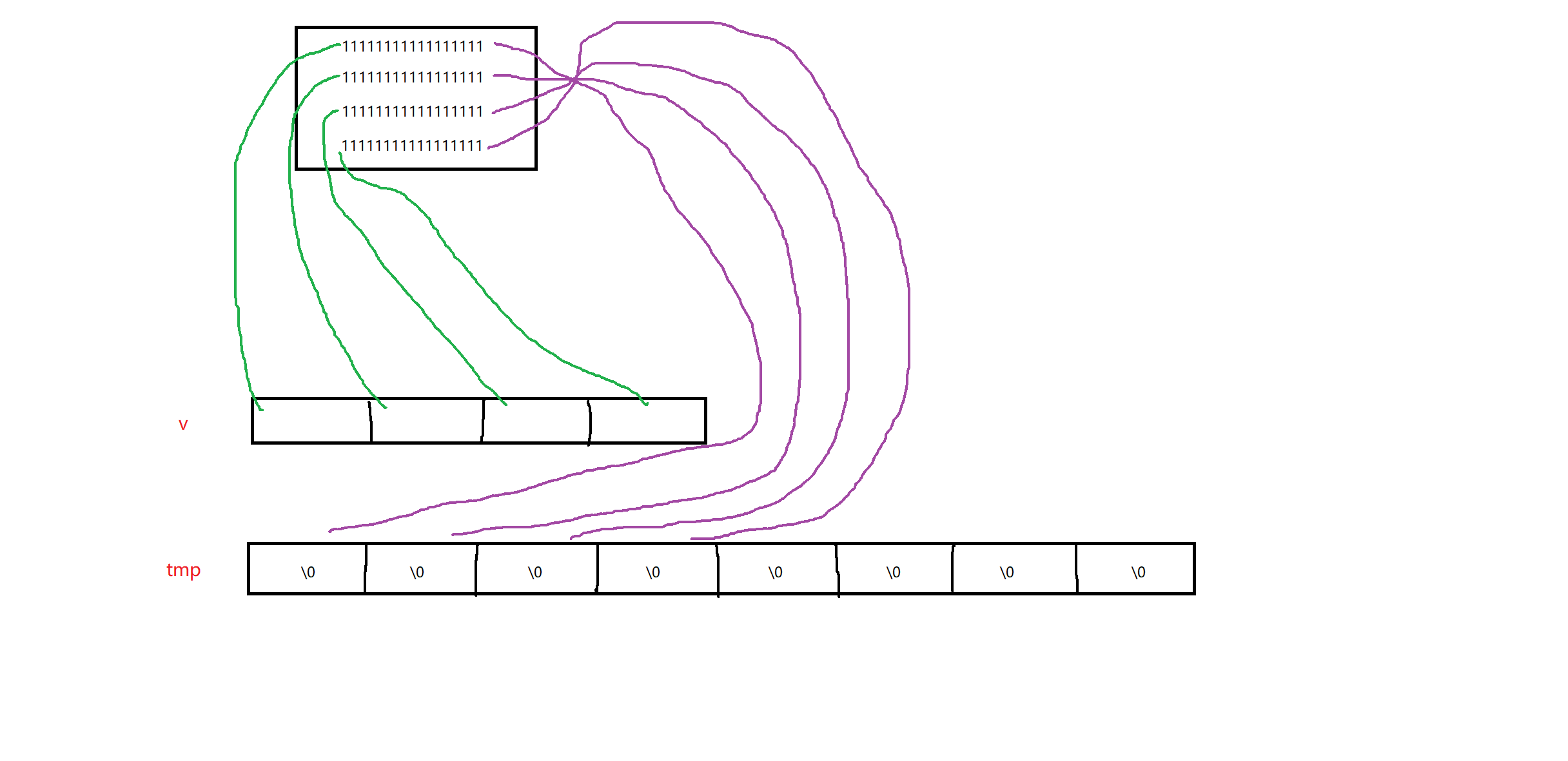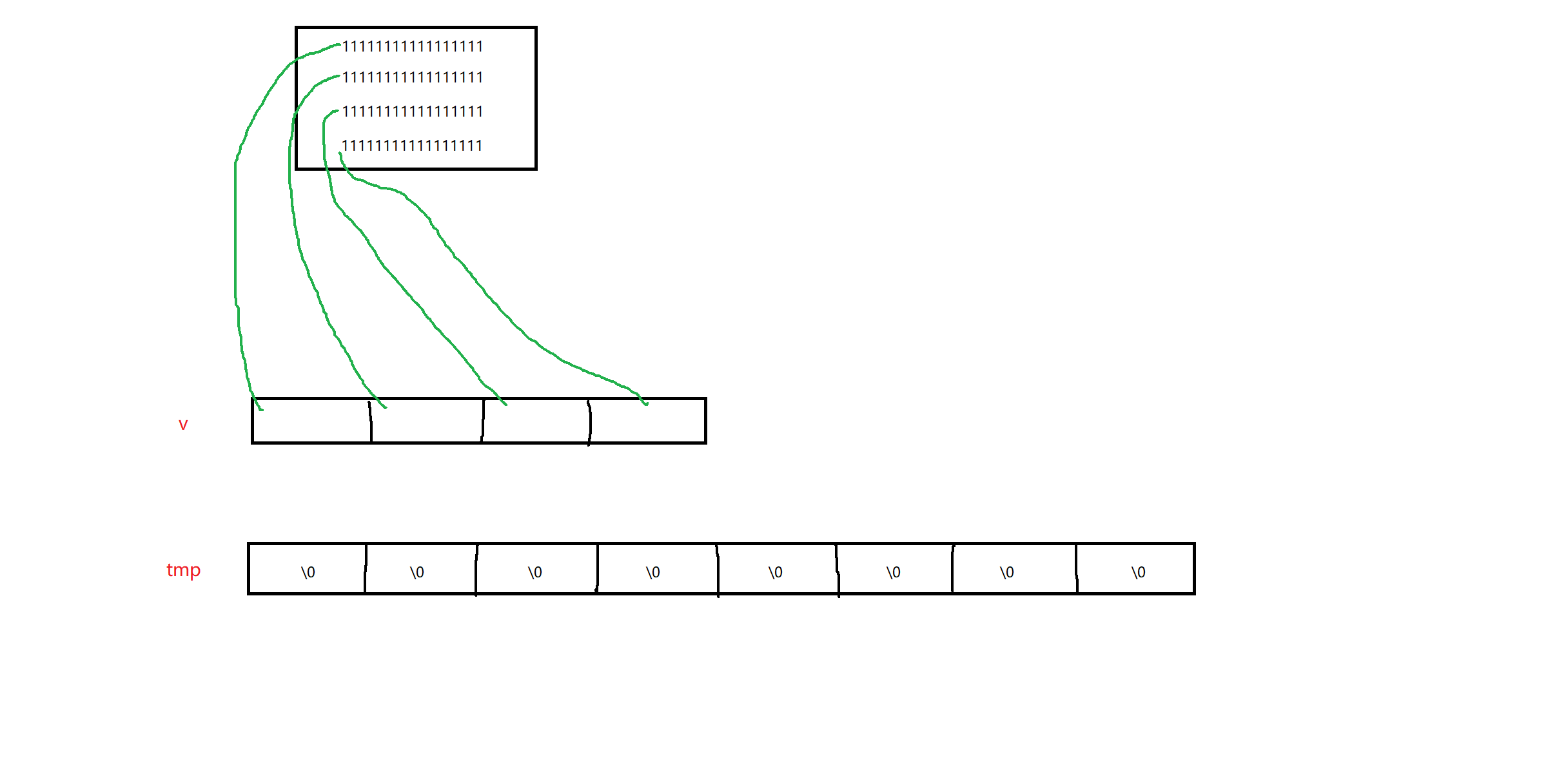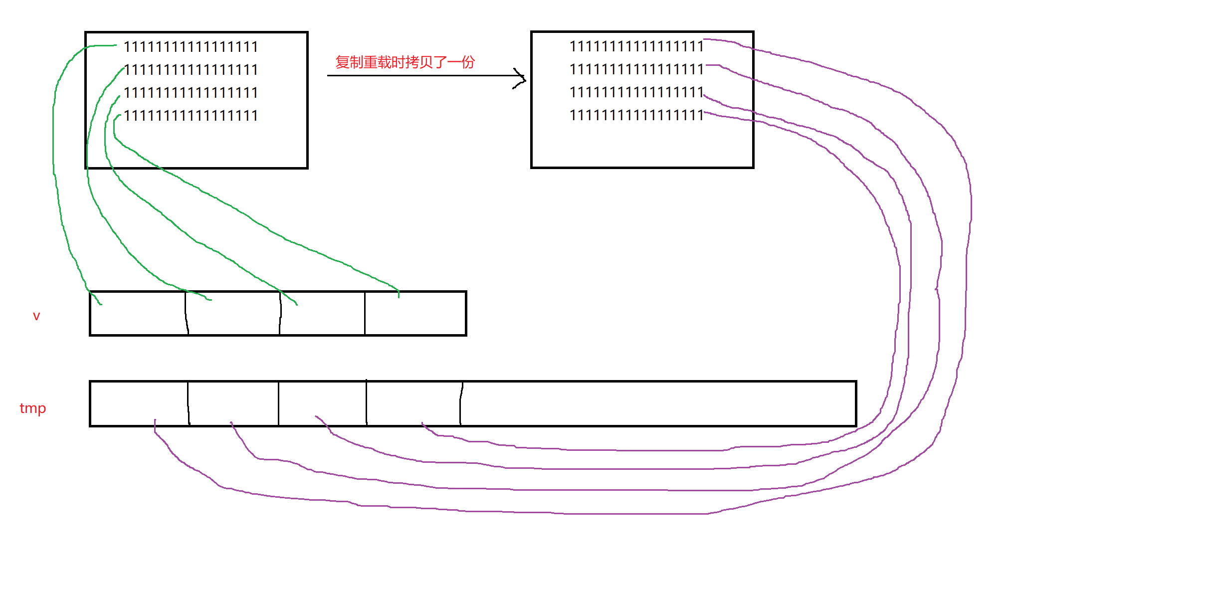 这样实际上tmp每一个string的指针与v每一个string的指针,都分别指向了同一块资源。析构时,这块资源被释放,就会发生意想不到的错误。